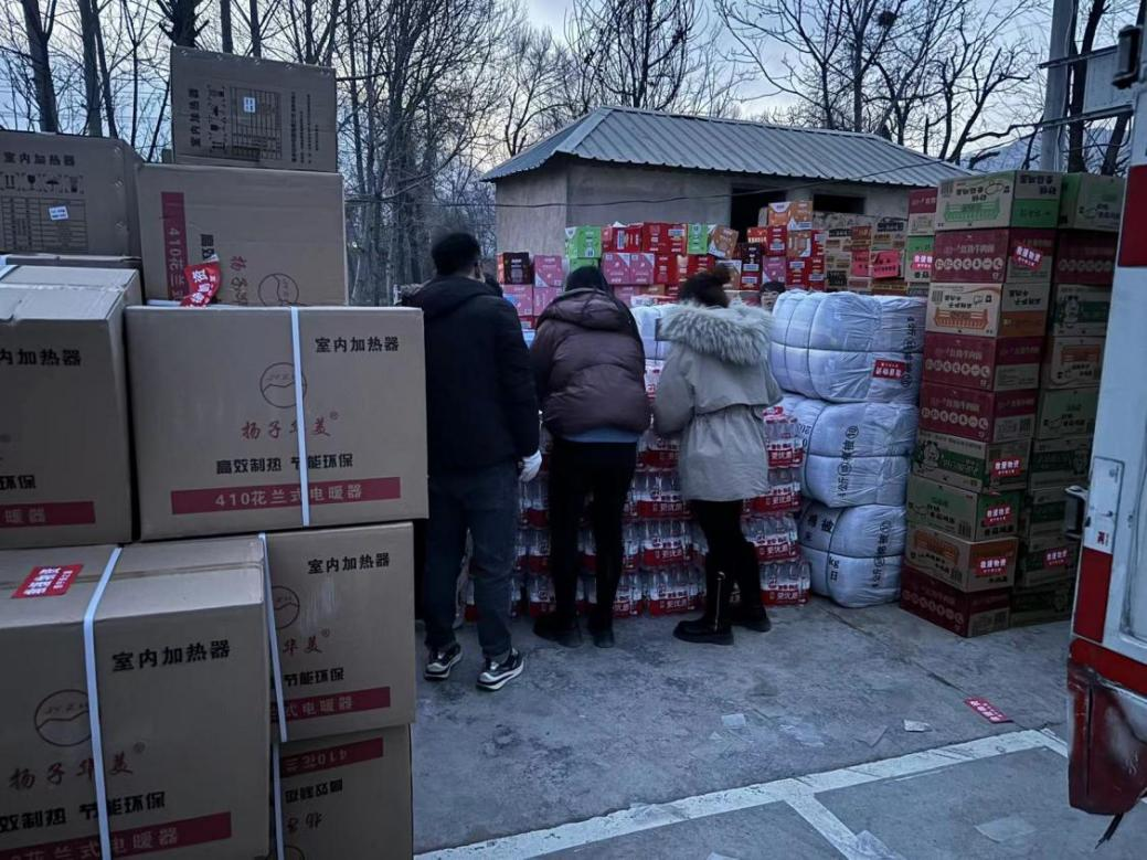圖:燕之屋抗震救災物資抵達青海省海東市民和縣鮑家村