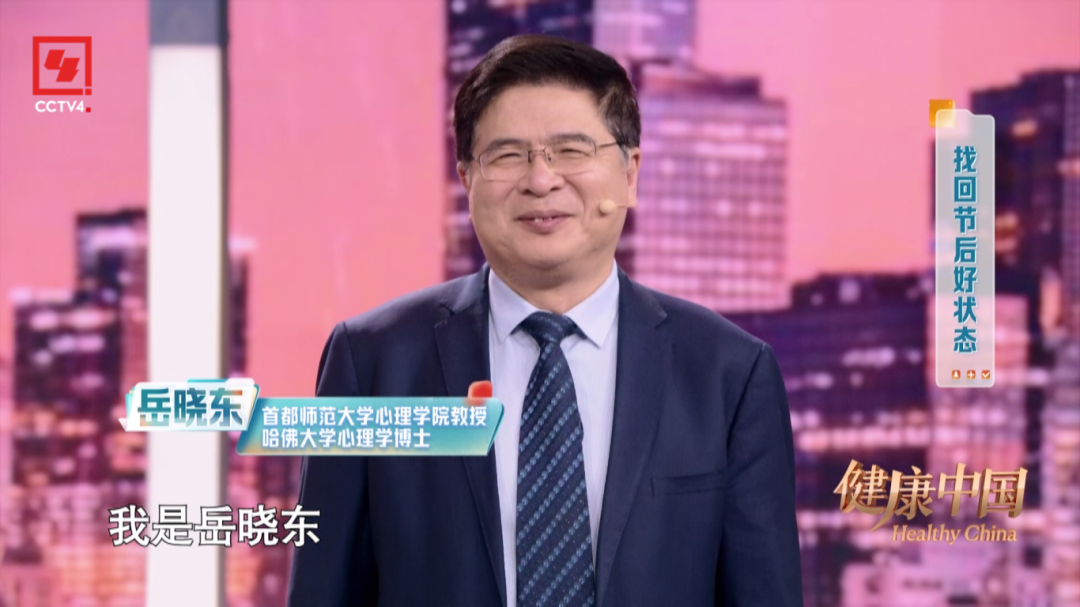 本期,由燕之屋獨家冠名的CCTV-4大型健康類欄目《健康中國》特邀首都師范大學(xué)心理學(xué)院教授、哈佛大學(xué)心理學(xué)博士岳曉東和清華大學(xué)社會科學(xué)學(xué)院院長彭凱平教授,以及北京大學(xué)第三醫(yī)院運動醫(yī)學(xué)科的苗欣博士,與您共同探討如何找回節(jié)后好狀態(tài)。