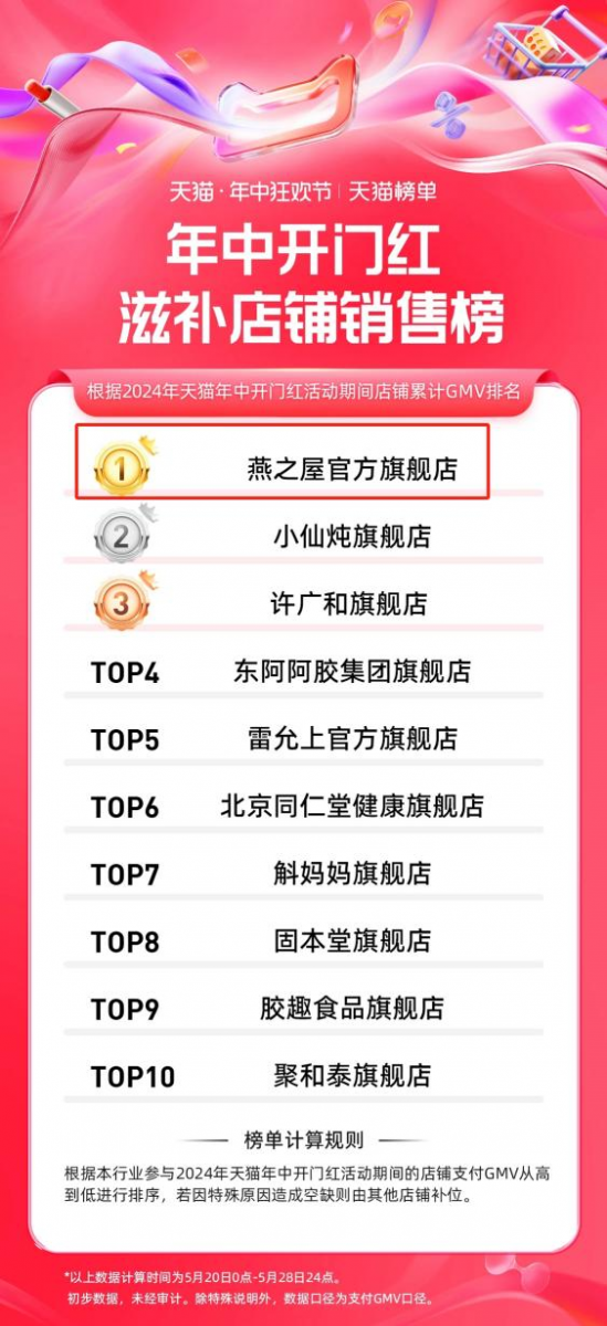 隨著618大幕拉開,第一波戰(zhàn)報(bào)火熱出爐。據(jù)阿里健康發(fā)布的2024年天貓年中開門紅健康行業(yè)成績(jī)單顯示,燕之屋官方旗艦店榮登滋補(bǔ)店鋪銷售榜第一、健康行業(yè)店鋪銷售榜第二,展現(xiàn)了燕之屋在品牌年輕化戰(zhàn)略中的深度思考和實(shí)踐能力。