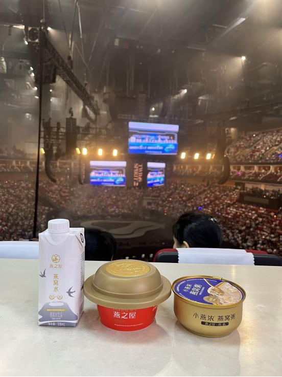 燕之屋專屬貴賓包廂位于場館包廂層觀演區(qū),以獨(dú)立豪華私享空間、劇場型座椅、餐飲服務(wù)等高級配置,為客戶打造舒適、自由、高品質(zhì)的觀演新體驗(yàn)。包廂客戶不僅可以享受專屬便捷入場通道、視野廣闊的沉浸式觀演,還可享用燕之屋小燕濃燕窩粥、燕之屋燕窩肽天然蘇打水,升級美好視聽盛宴。燕之屋借助持續(xù)火爆的演出市場,將品牌傳播與演唱會創(chuàng)新結(jié)合,通過邀請觀看演唱會的方式答謝忠實(shí)客戶,深受客戶喜愛。